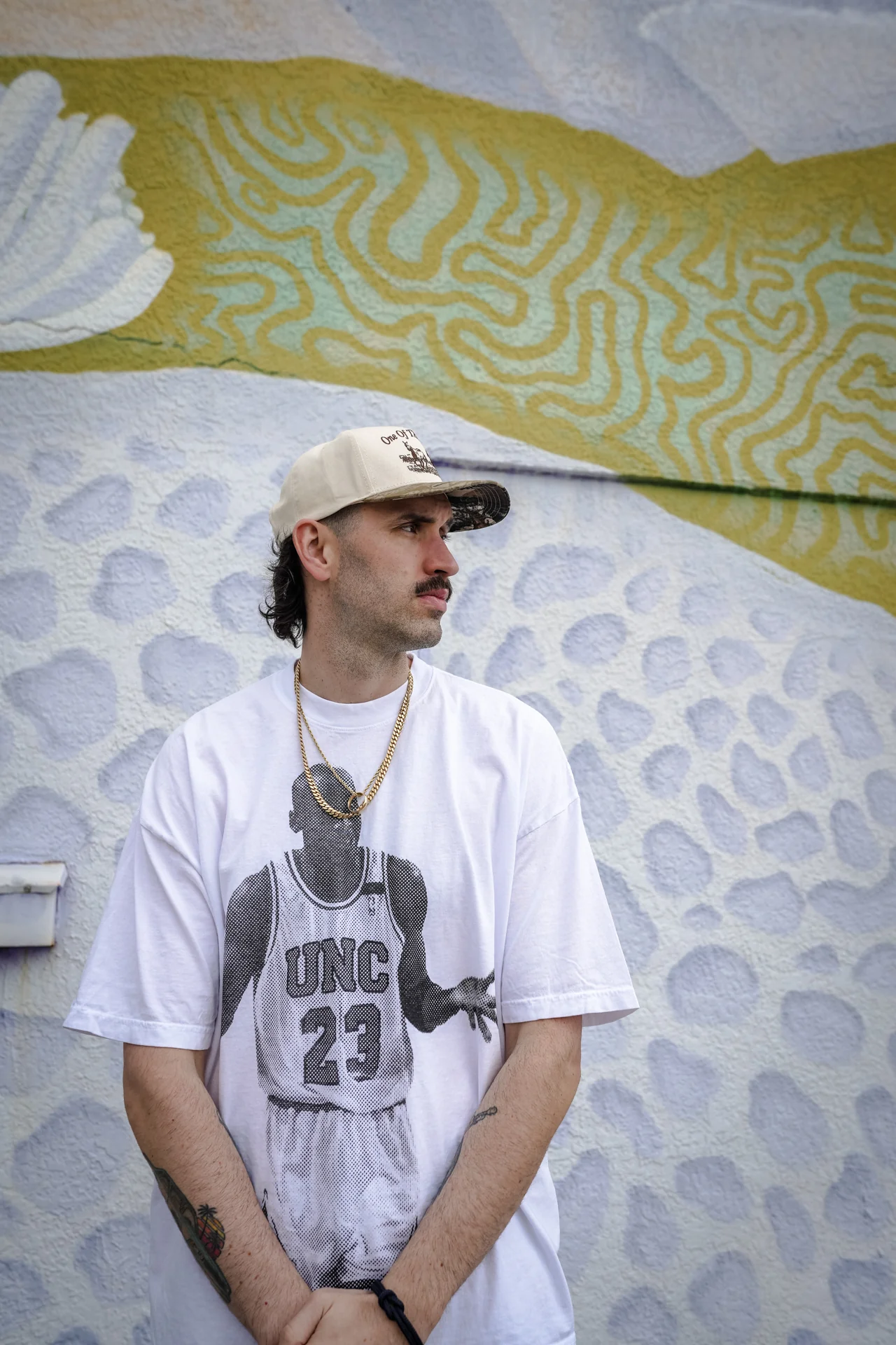 White garment dyed shirt. Black ink. Hand printed. Front & back graphic. Placement & ink weight will vary on every single shirt. These are true one of ones and the imperfections are what make them unique. Your shirt is only your shirt.
