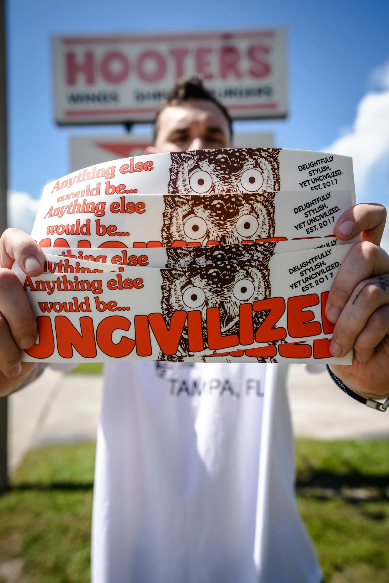 UNCIVILIZED "HOOTERS" BUMPER STICKER